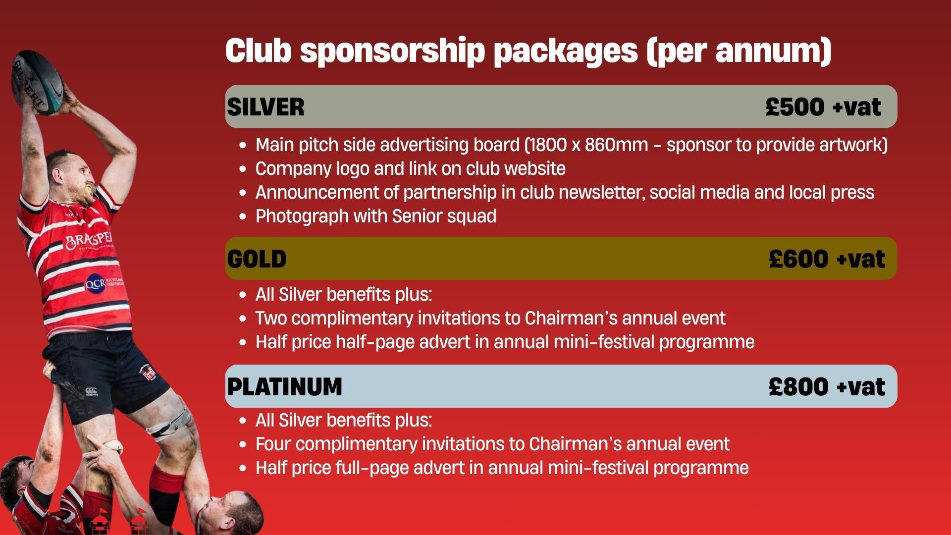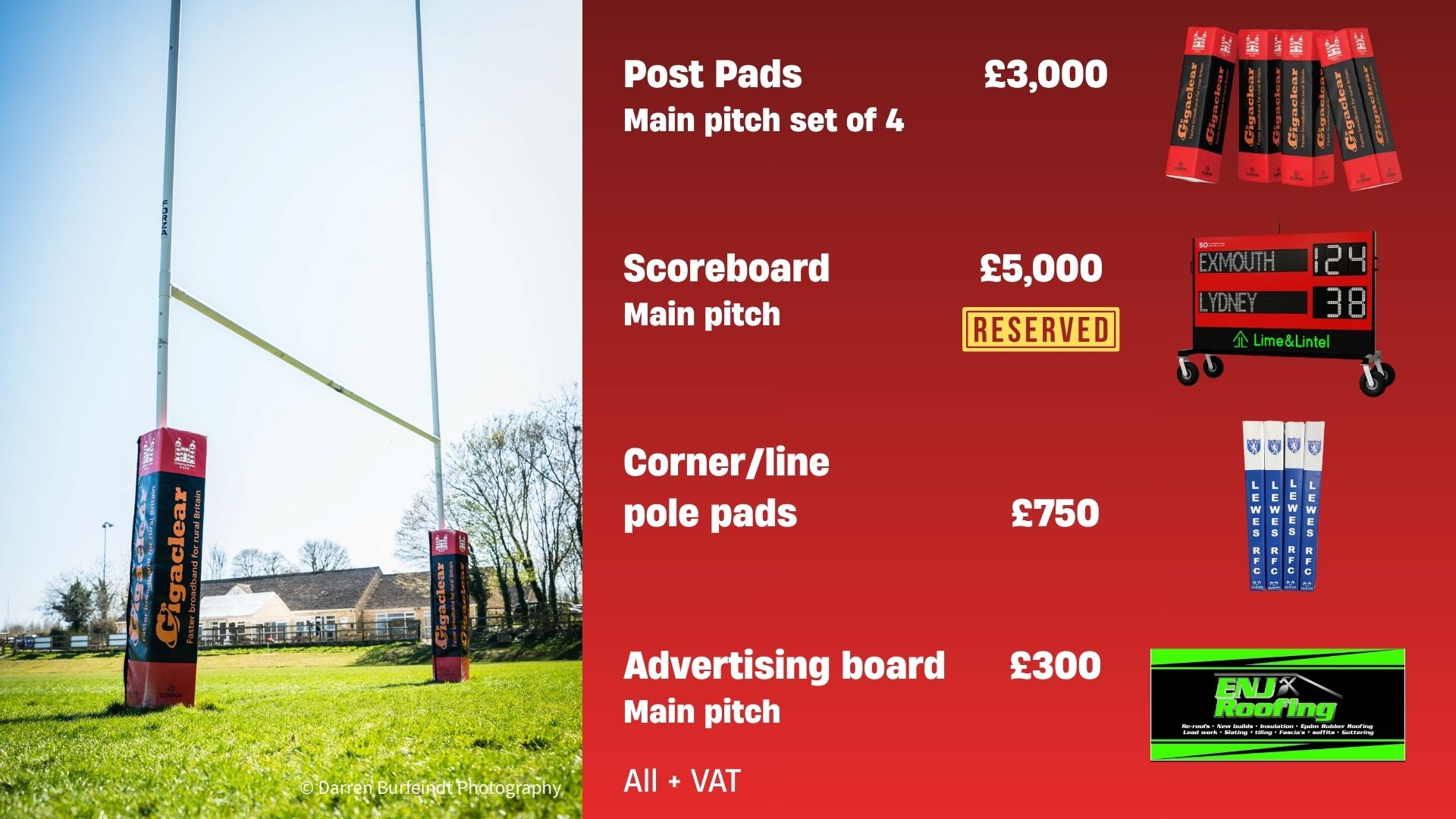 - Clubhouse and Pitch Hire